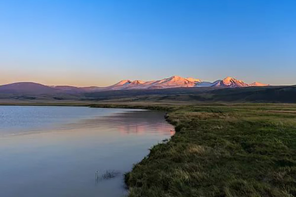 - После завтрака подъем на перевал «Тёплый Ключ», откуда открывается великолепный вид на плато Укок. Спускаемся с перевала и, после преодоления брода, движемся вдоль массива Табын-Богдо-Ола, что в переводе означает – Пять Священных Вершин – до заставы Аргамджа, где делаем отметки в пропусках. Далее движемся вниз по реке Ак-Алаха, в бассейне которой огромное количество живописных озер.