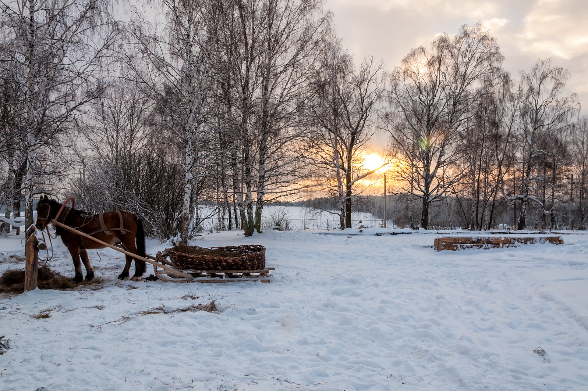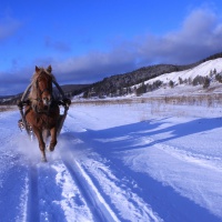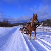 Ознакомление с упряжью. Обучение навыкам управления лошадью в санях. Ознакомительный радиальный конно-санный выезд в окрестностях села, с посещением обзорных и видовых точек (продолжительность ~ 2 часа). Возможно – за дополнительную плату - верхом на лошади.
