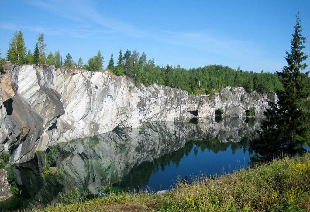 Экскурсия по горному парку «Рускеала» (260 км от Петрозаводска). Именно здесь добывали мрамор для украшения храмов и дворцов Петербурга, а ныне посещают гроты и штольни. Жемчужина парка – Мраморный каньон, который образовался на месте заброшенного карьера и заполнился водой. Это рукотворное Мраморное озеро с изумрудной водой произведет на Вас неизгладимое впечатление. Аналогов этому парку нет ни в России, ни в Европе.