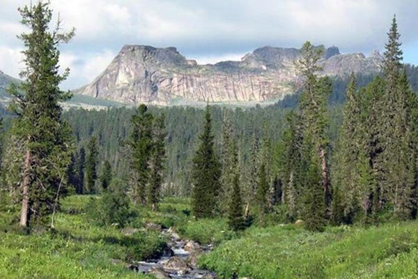 - На Саянском перевале, на высоте 2214 метров над уровнем моря, начинается Хакасия. Горы здесь окружены сказочной кедровой тайгой.