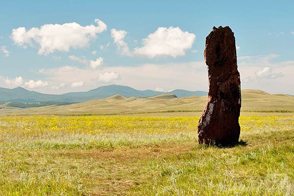 - Из Абакана группа отправляется в Долину Царей, где находятся около 30 могильных курганов III-IV века до н.э. Кульминацией всего путешествия станет Большой Салбыкский курган, когда-то сооруженный над могилой знатной семьи тагарского племени и раскопанный археологами в 1954-56 гг. Он имел окружность 0,5 км и высоту 11,5 м, а вес вертикально стоящих камней достигает 60 тонн.