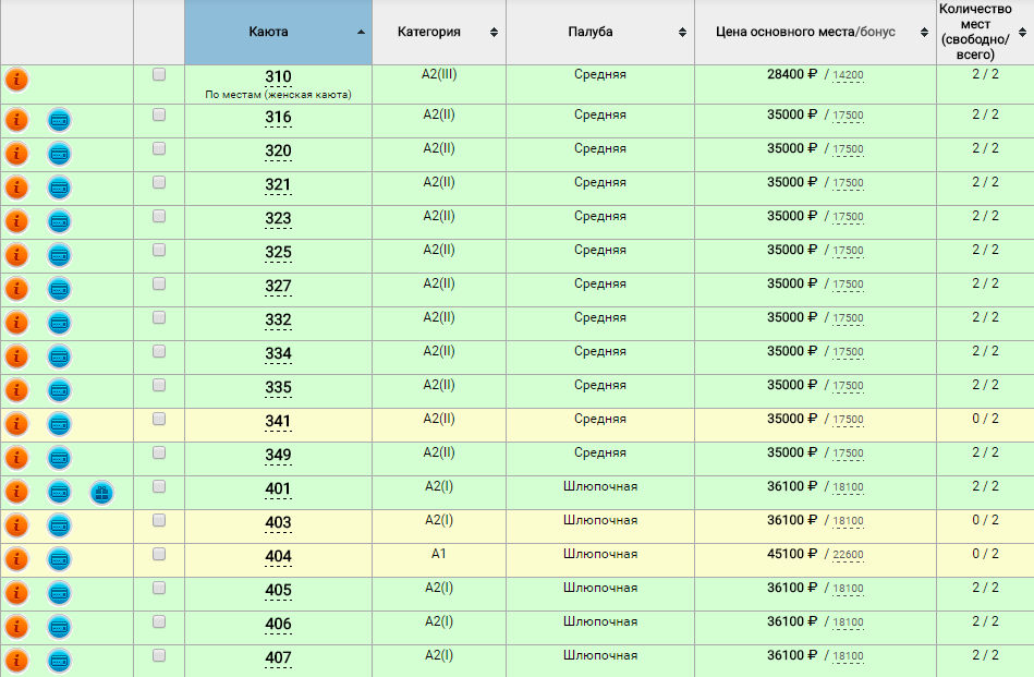 СКИДКИ: Скидки за размещение: При размещении в каютах категорий А2(III), А2(II), А2(I) ребенок до 7 лет (включительно) путешествует со скидкой - 80%! Количество мест ограничено. Примечания: Цены указаны в рублях на одного человека. Компания оставляет за собой право на дальнейшее изменение цен. |