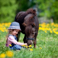 Миниатюрные лошадки приветливы и дружелюбны. В основу их разведения помимо малого роста была положена очень важная черта для всех без исключения миников, а именно их добрый нрав. Добродушие любой из мини ни когда не сравниться с их «большими» братьями. Мини лошади – это совершено особый вид. Они очень хорошо ладят с детьми и становятся их лучшими друзьями. В отличии от других домашних животных, мини лошадки требует особого ухода, который как показывает практика, приносит удовольствие и развлечение. Дети любят расчесывать гривы и заплетать причудливые прически свои любимицам. Любят гулять и кормить их. Помимо приносимой радости, мини лошадка поспособствует развитию таких качеств в ребенке как ответственность и забота.