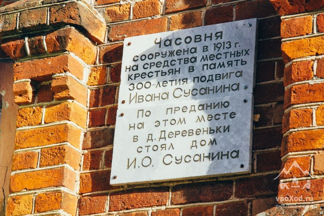 Посетим часовню с памятной доской в урочище Деревеньки, которая стоит на предполагаемом месте дома, где жил Сусанин. Самой деревни уже давно не существует. После непродолжительного похода через лес и поля, где можно найти немало четырехлистных клеверов, встанем лагерем рядом с лесным ручьем, в глуши. (15км)