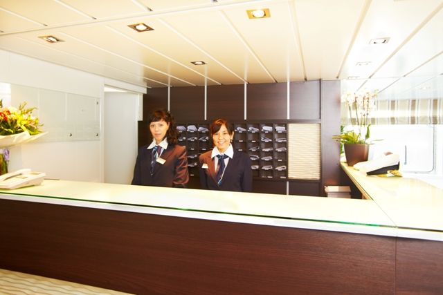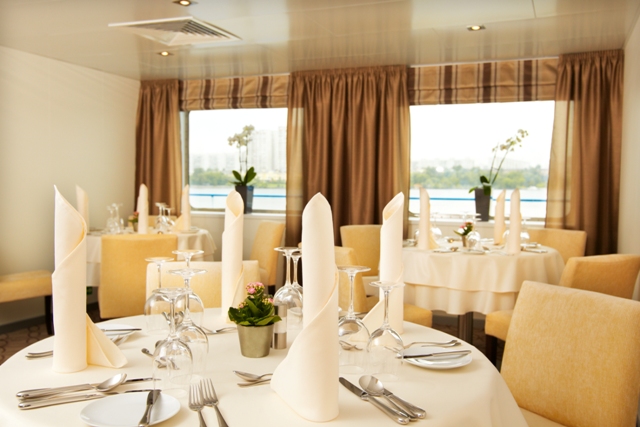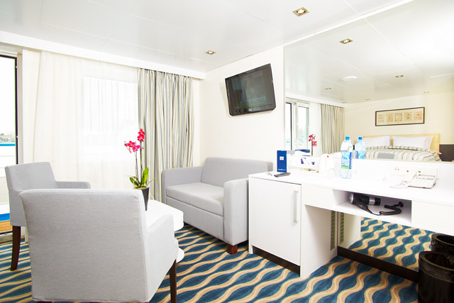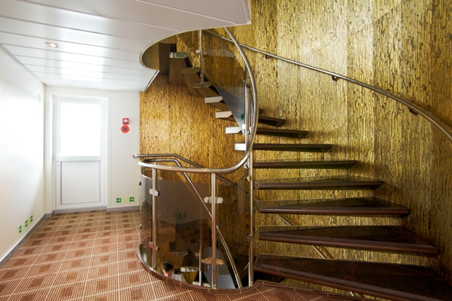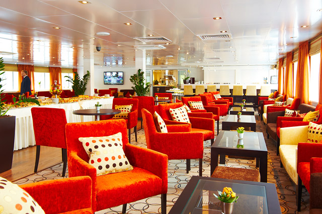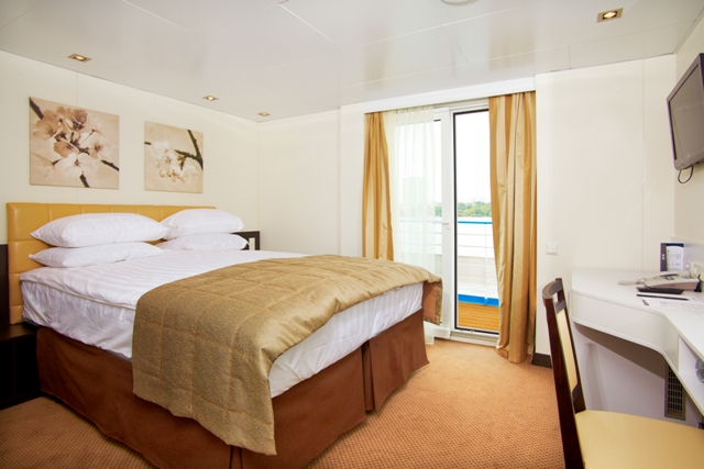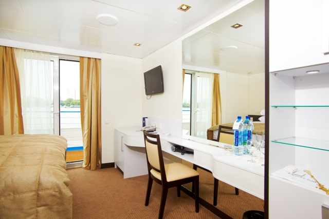 На теплоходе 56 комфортабельных кают, в которых имеются балкон, двуспальная кровать, большая туалетная комната с душевой кабиной, кондиционер, телевизор со спутниковыми каналами, фен, сейф, радио, электрическая розетка 220 В и 110В, внутренняя и внешняя телефонная связь, беспроводной Интернет (Wi-Fi), а также спутниковый интернет и телевидение. Площадь кают от 14 до 24 кв. метров. Пассажирский лифт соединяет все палубы теплохода. Большая верхняя открытая палуба с шезлонгами служит для полноценного отдыха туристов. На главной палубе расположен ресторан, бар, парикмахерская, массажный салон, медпункт, комфортная зона приема гостей.