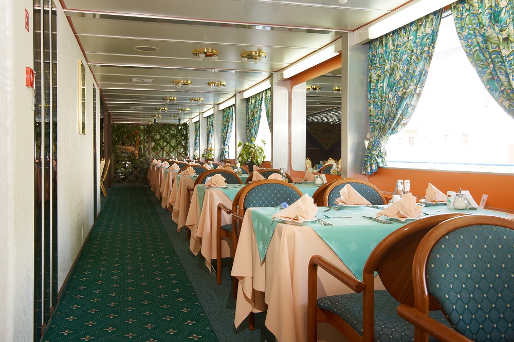«Антон Чехов» - четырехпалубный теплоход проекта Q-056. Интерьер судна выполнен в современном стиле.
