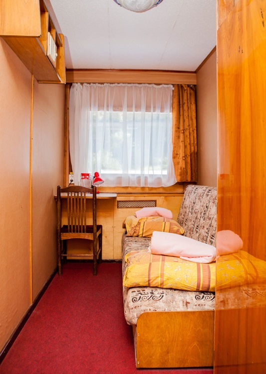 На теплоходе 52 каюты. В каждой: ванная комната с душем и фен. В каютах на средней палубе есть холодильники и кондиционеры.