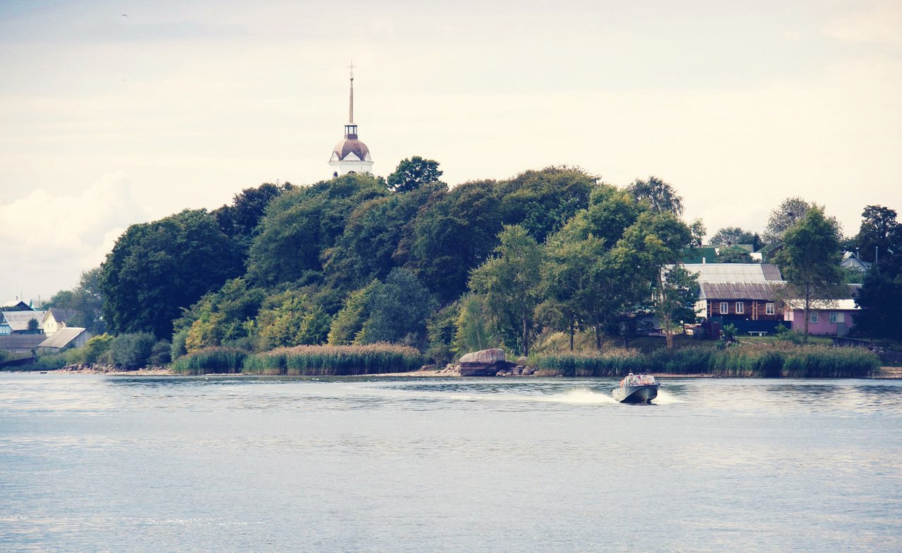 14:30-15:00 - Переезд по воде на остров Верхний (Белов) . Обзор со стороны на остров Талабенец (Птичий).