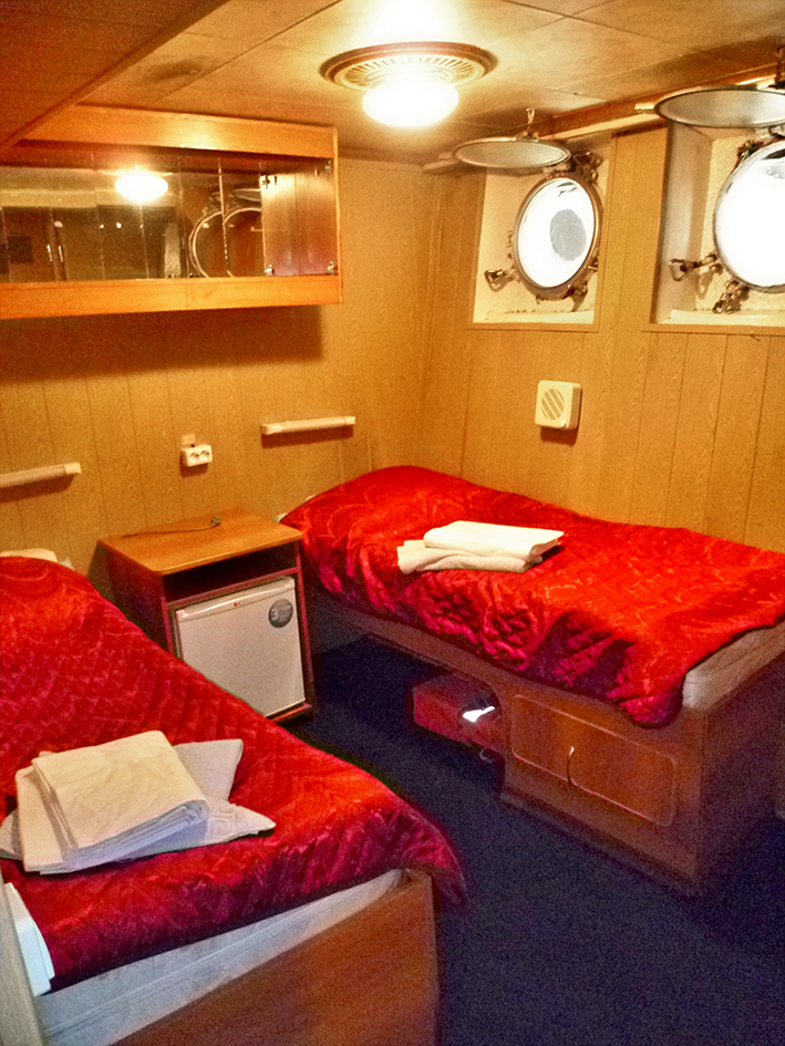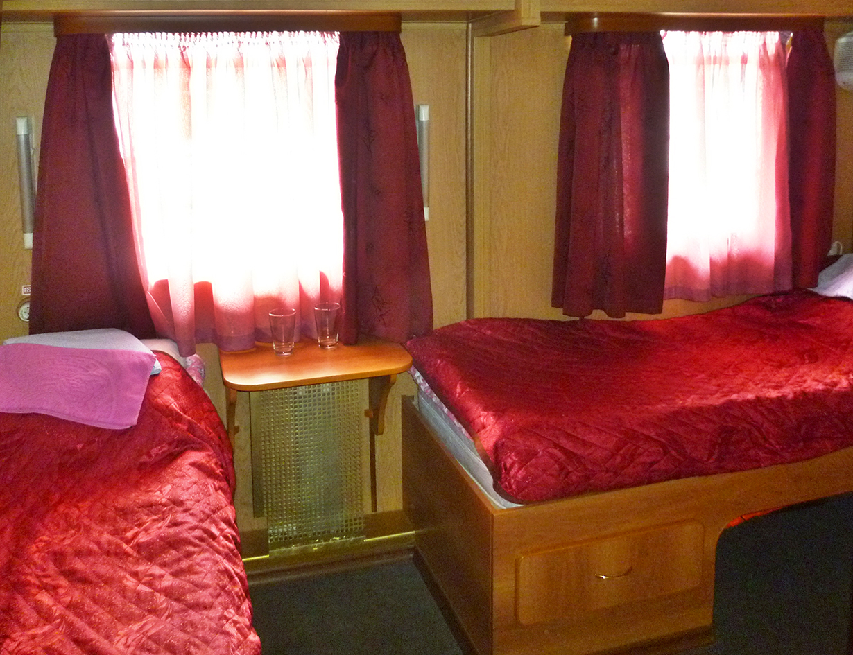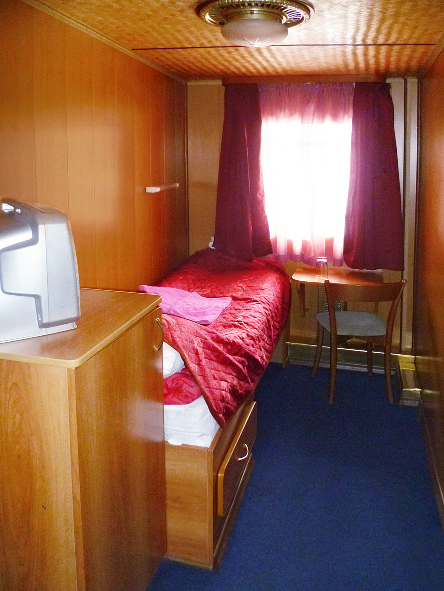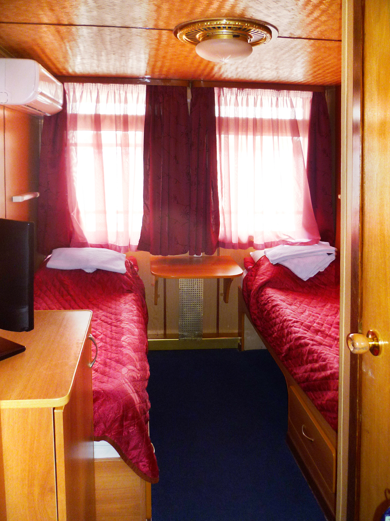 В каждой каюте: душ, санузел, телевизор, шкаф для одежды, кондиционер/общая система кондиционирования. В каютах на шлюпочной палубе индивидуальные кондиционеры. В каютах на средней, главной и нижней палубах общая система кондиционирования.