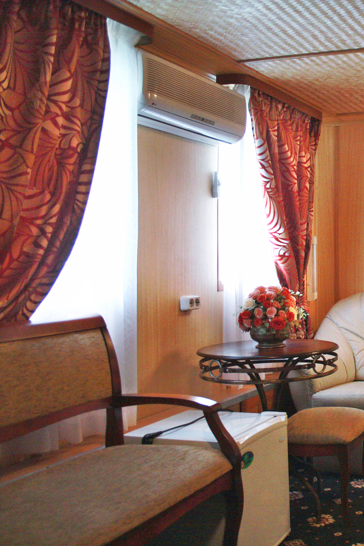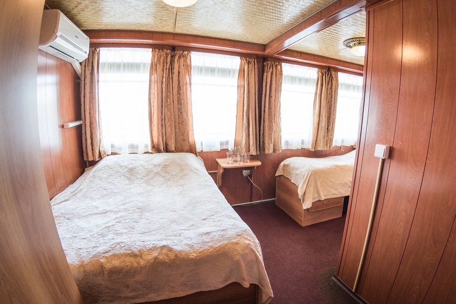 В каждой каюте: душ, санузел, телевизор, шкаф для одежды, кондиционер/общая система кондиционирования. В каютах на шлюпочной палубе индивидуальные кондиционеры. В каютах на средней, главной и нижней палубах общая система кондиционирования.