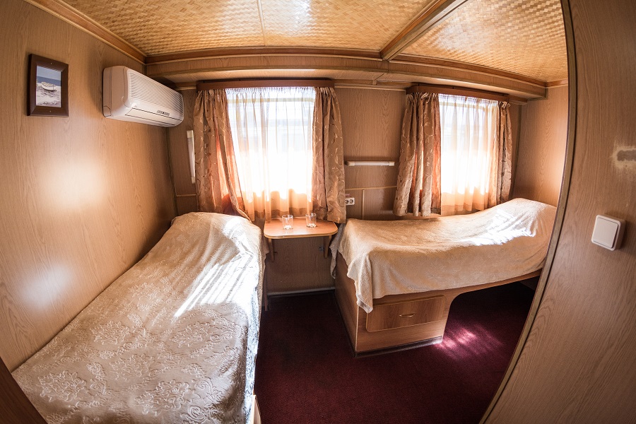 На борту каюты со всеми удобствами, есть каюты категорий «Люкс» и «Полулюкс», а также три двухкомнатных люкса, названных в честь Юлия Цезаря, Клеопатры и Александрии, из которой эта легендарная царица правила Египтом. Каждая каюта оформлена в своем стиле.