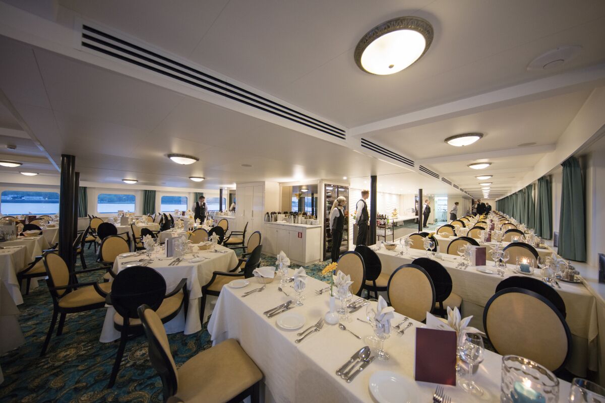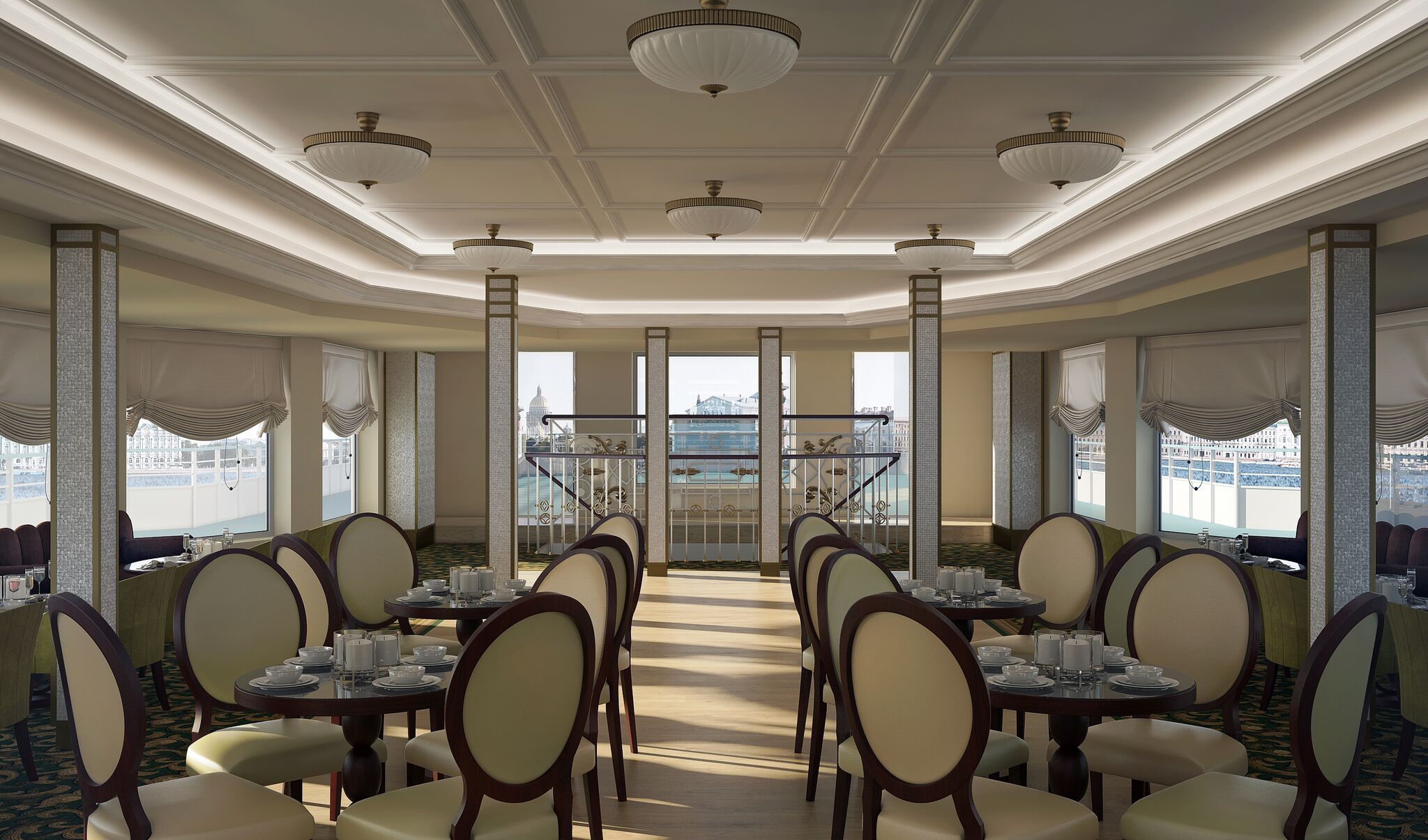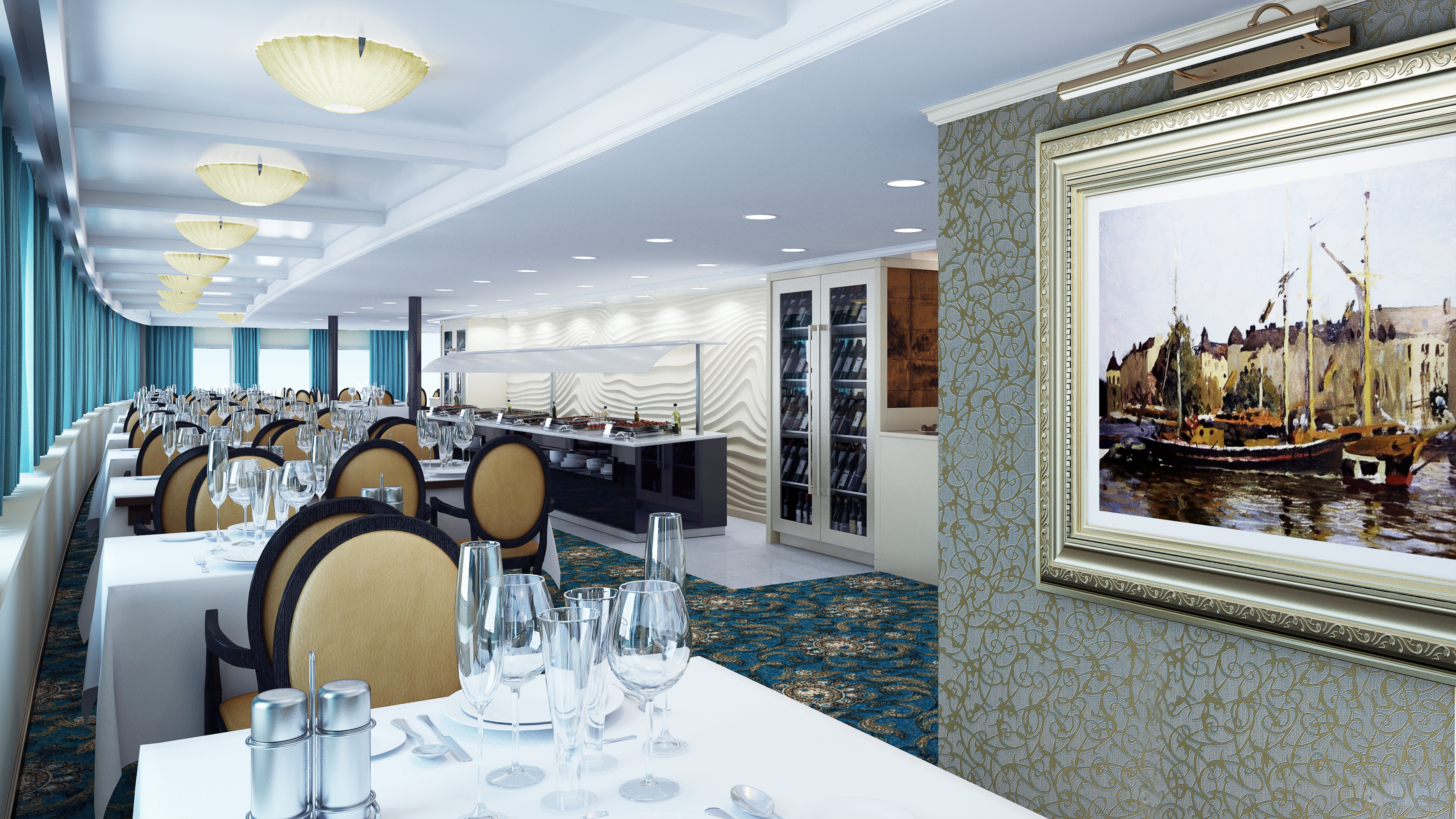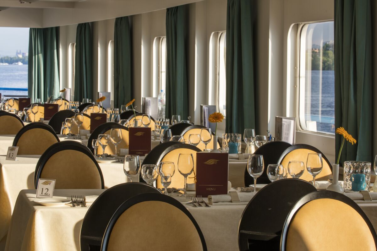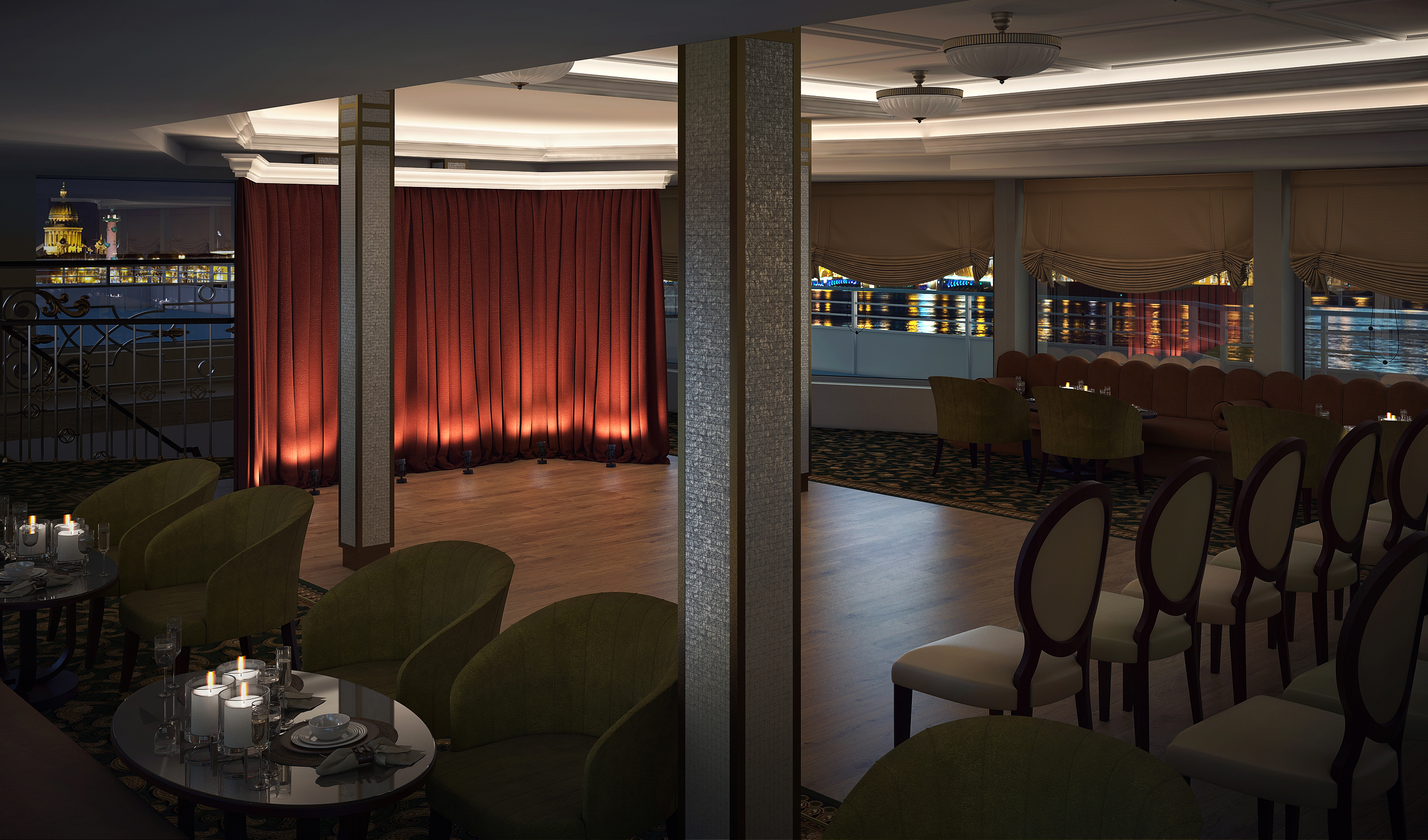 В каюте: система индивидуального климат-контроля, туалет\душ, телевизор, холодильник, платяной шкаф и панорамное окно.