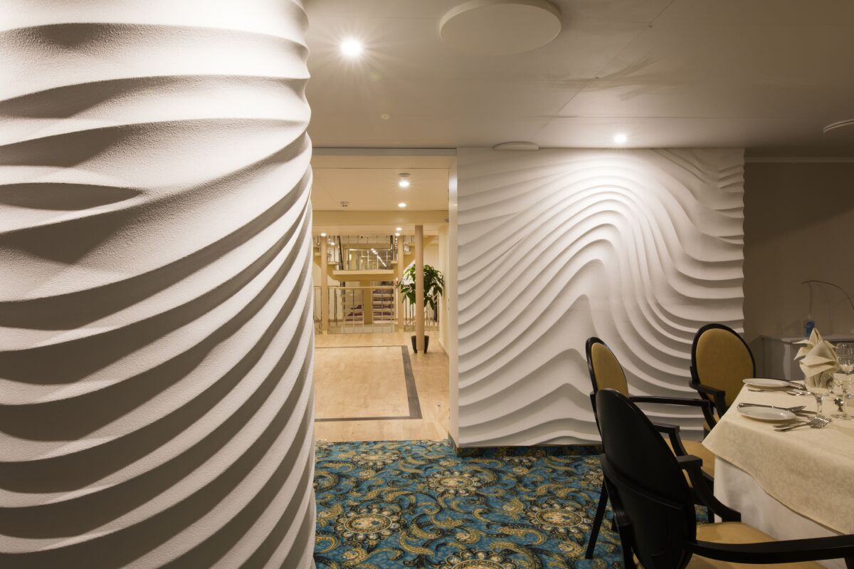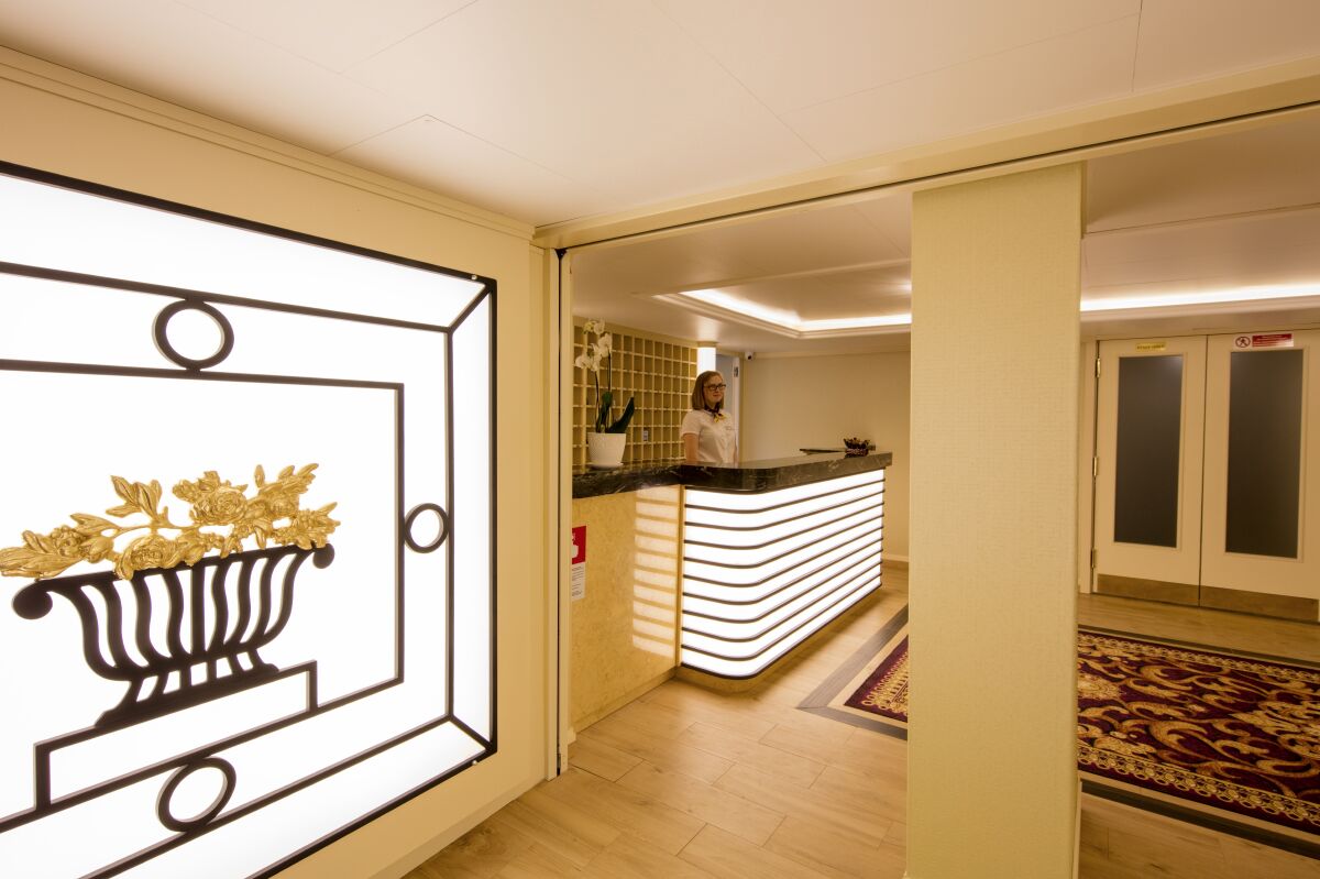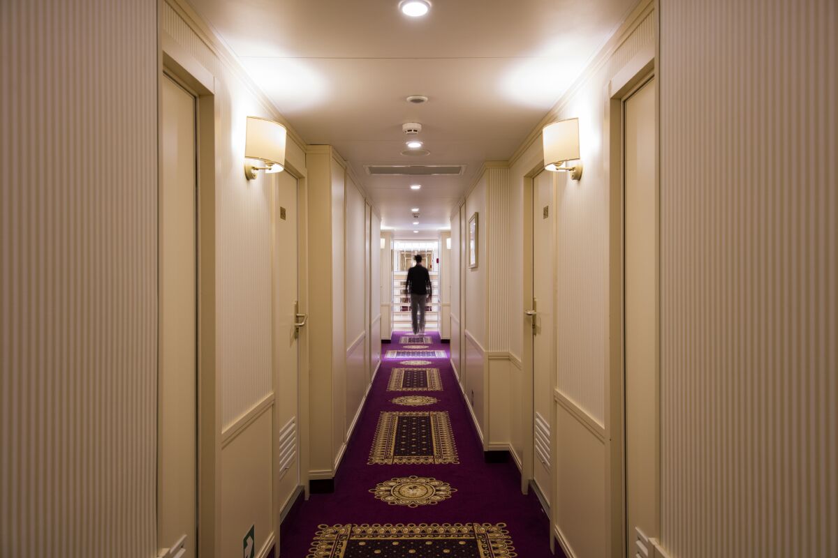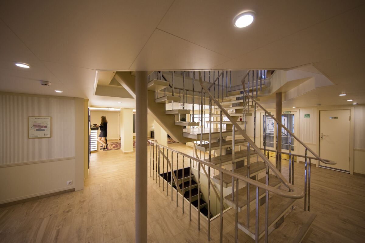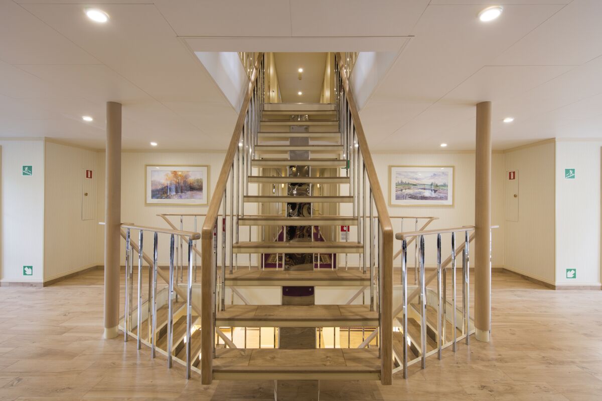 В каюте: система индивидуального климат-контроля, туалет\душ, телевизор, холодильник, платяной шкаф и панорамное окно.
