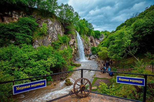 - Трансфер 61 км в Карачаево-Черкесию на Медовые Водопады. В автобусе работает экскурсовод.