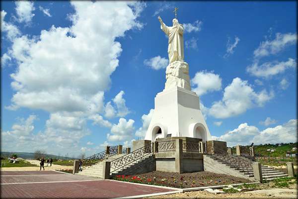 - Здесь, на горе Воскресения – единственная в мире статуя-гигант, созданная православной Церковью. Скульптурный образ Иисуса Христа размещен на камне, символе Земли, а сам камень лежит на крыше часовни. Строительство велось на пожертвования и продлилось два года. На территории комплекса действуют детская воскресная школа и три часовни, построенные в честь Пресвятой Троицы, Успения Божией Матери и пророка Илии.
