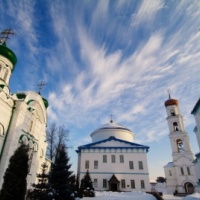 Нынешний архитектурный комплекс монастыря создавался на протяжении ХVII — ХIХ веков и теперь включает храм Чудотворной иконы Грузинской Божьей Матери, самую маленькую в Европе церковь во имя мучениц Веры, Надежды, Любови и матери их Софии, Троицкий собор, Церковь во имя Святых Отцов, в Синае и Раифе убиенных.