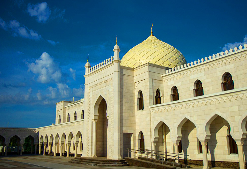 Ни одно фото не способно передать в полной мере всей роскошности и торжественности этого чуда. Водоем, в котором отражается белая чинность строения, придает мечети сходство с индийским Тадж-Махалом.
