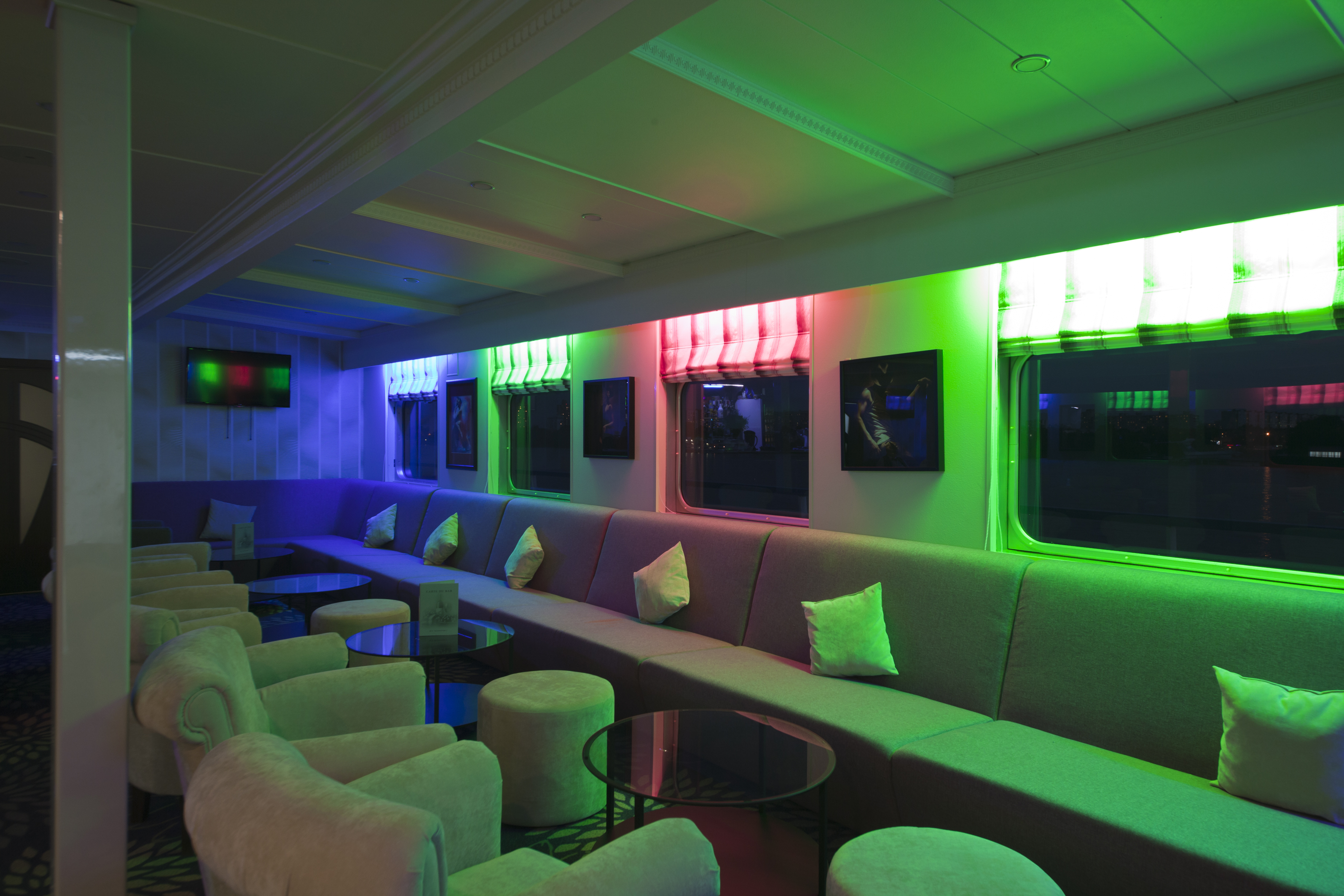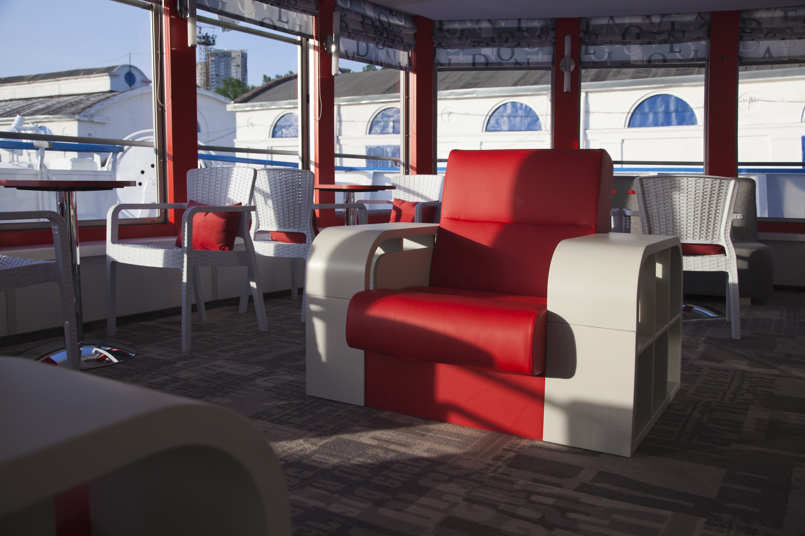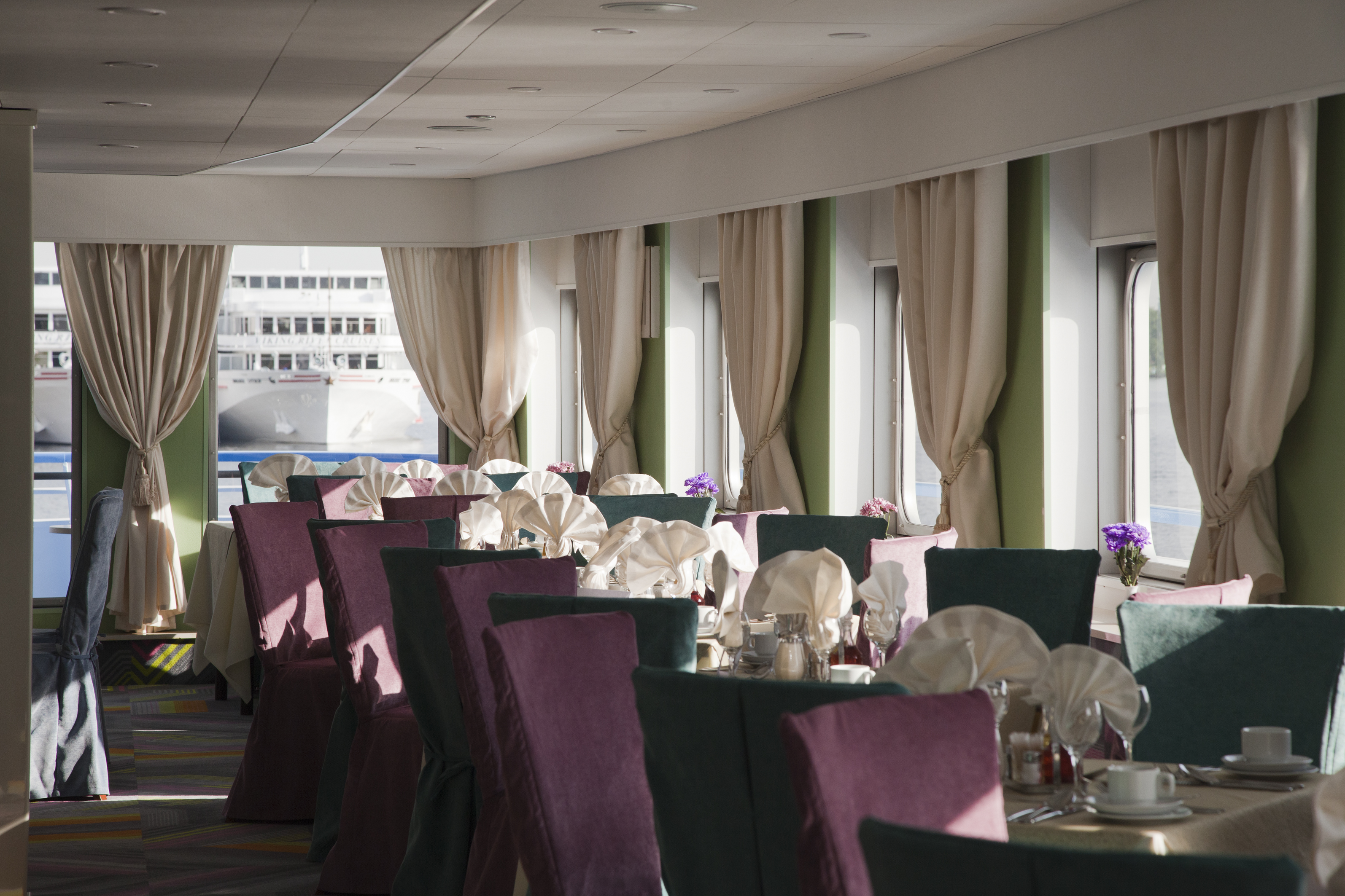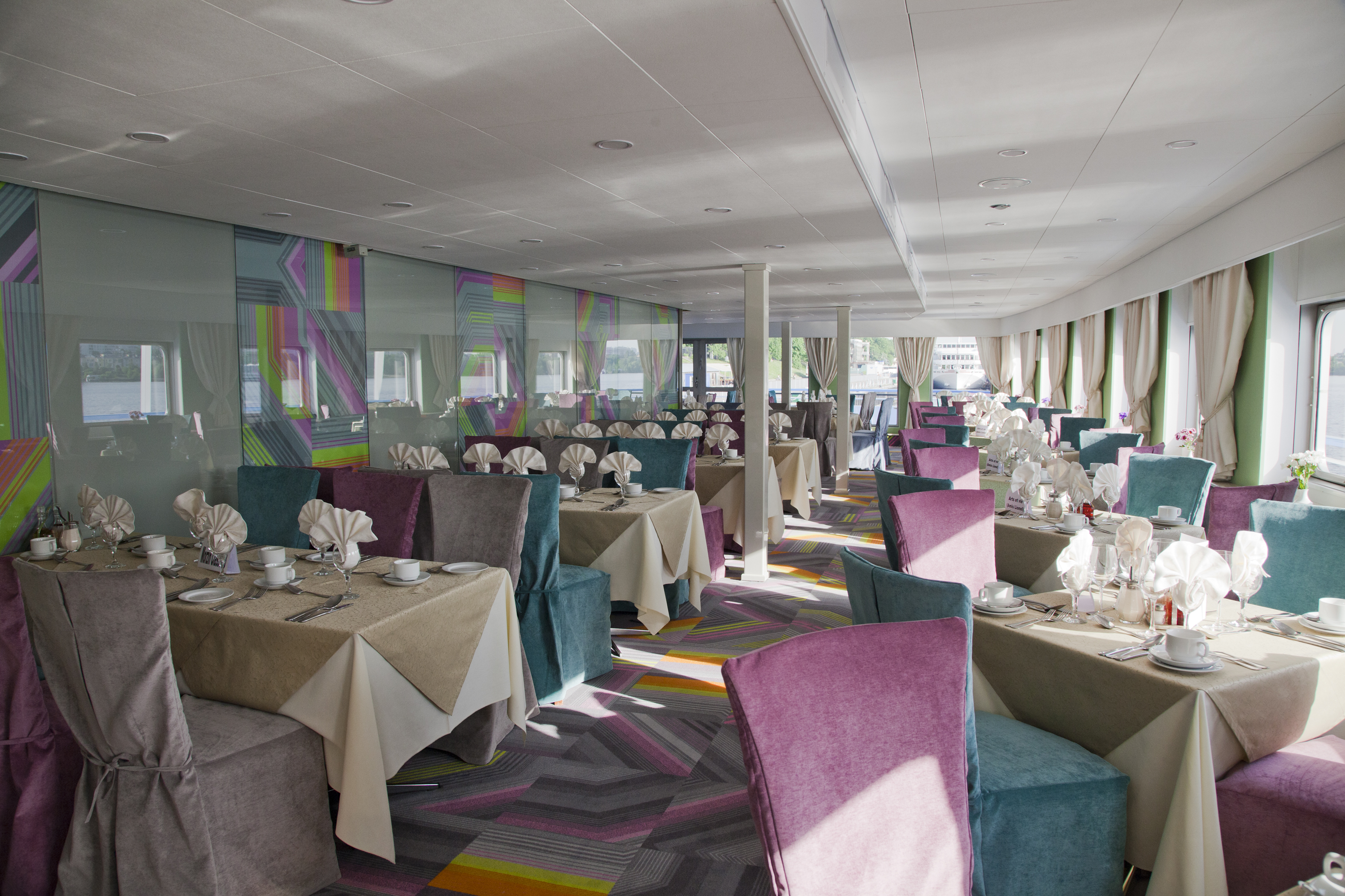Все каюты оборудованы: кроватями, удобствами (душем, туалетом), системой индивидуального климат –контроля, мини-холодильником, радио и широкими окнами.