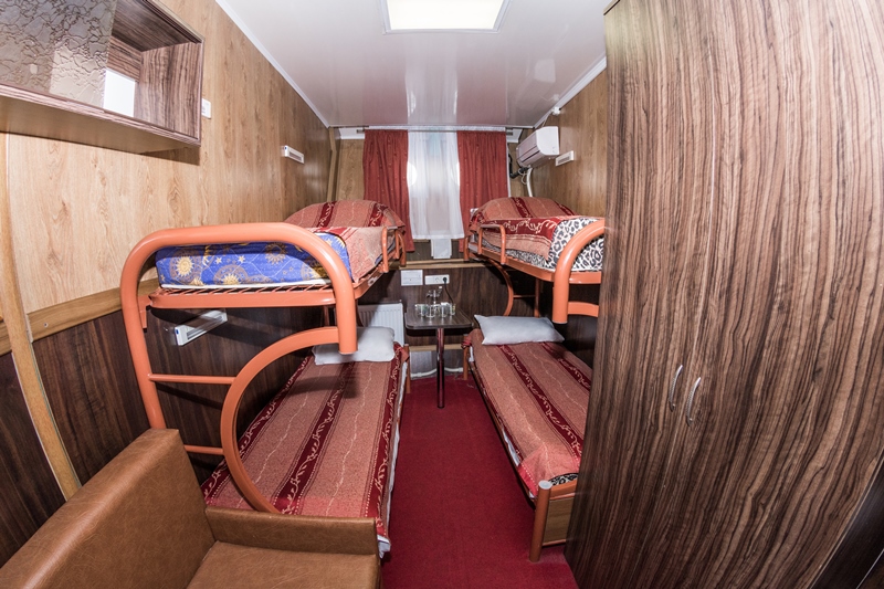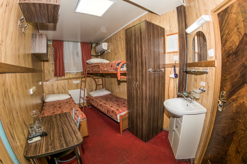 На теплоходе представлен широкий спектр кают: каюты с частичными удобствами (раковина), со всеми удобствами (душ, туалет, раковина) и каюты повышенной комфортности.