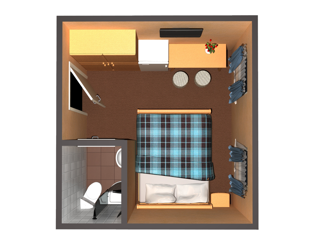 Во всех каютах: фен, холодильник, телевизор со спутниковым вещанием, кондиционер.